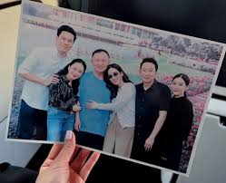 นางสาวแพทองธาร ชินวัตร เดินจูงมือลูกสาวและลูกชายออกมาจากเรือนจำ ขณะเดียวกันในมือถือภาพถ่ายครอบครัว ซึ่งเป็นภาพลูกทั้ง 3 คน และหลานทั้ง 7 คน ถ่ายคู่กับคุณตาและคุณปู่ทักษิณ