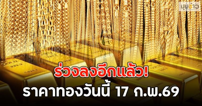 ร่วงลงอีกแล้ว! ราคาทองวันนี้ 17 ก.พ.69