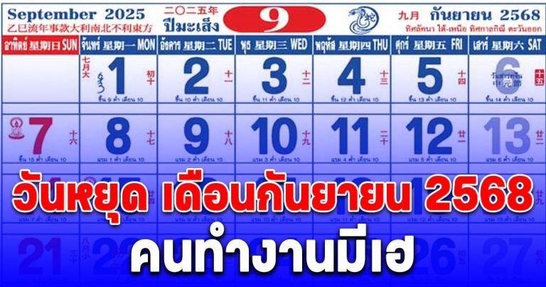 เปิดปฏิทิน วันหยุดเดือนกันยายน 2568