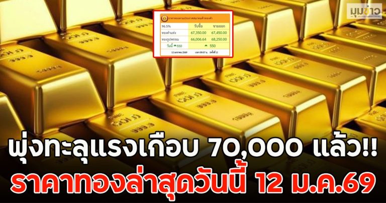 พุ่งทะลุแรงเกือบ 70,000 แล้ว!! ราคาทองล่าสุดวันนี้ 12 ม.ค.69