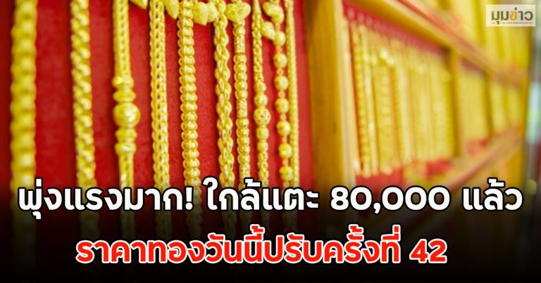 พุ่งแรงมาก! ใกล้แตะ 80,000 แล้ว ราคาทองวันนี้ปรับครั้งที่ 42